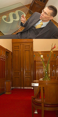 Durch die Totalrenovierung der Räumlichkeiten im Jahr 2001 entstand die architektonisch bemerkenswerte Kombination aus wertvollen Details eines originalen Jugendstilhauses und einer modernen, zeitgemäßen Kanzlei.